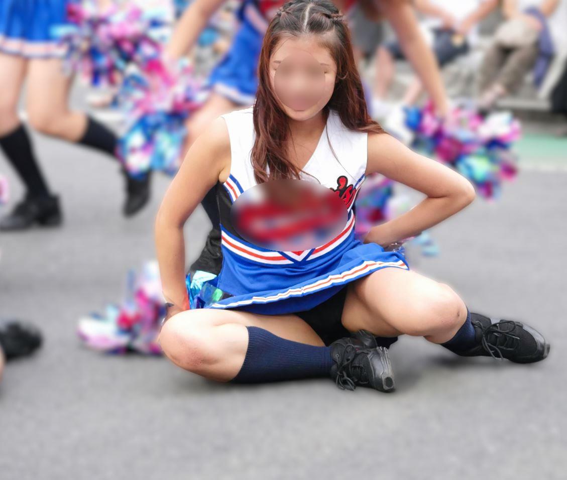開脚せざるを得ない状況にはすかさずJDチアリーダーの股間部分にファインダーを合わせてしまうのが撮影師の性というものです。